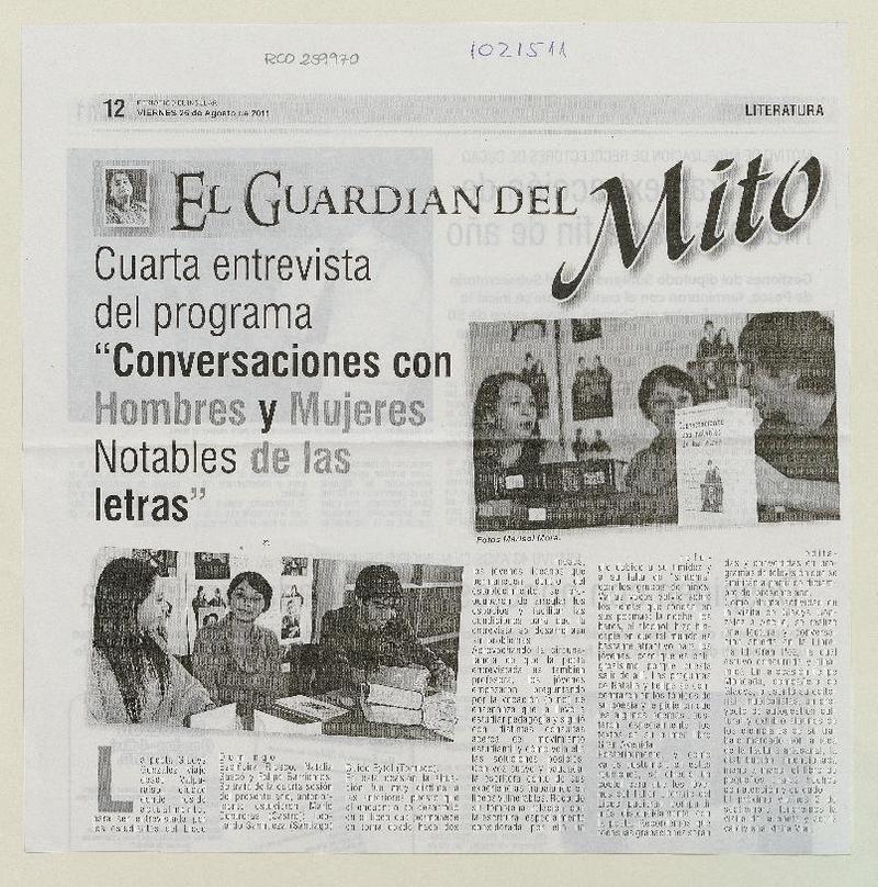Cuarta entrevista del programa "Conversaciones con hombres y mujeres notables de las letras" [artículo] Rosabetty Muñoz.