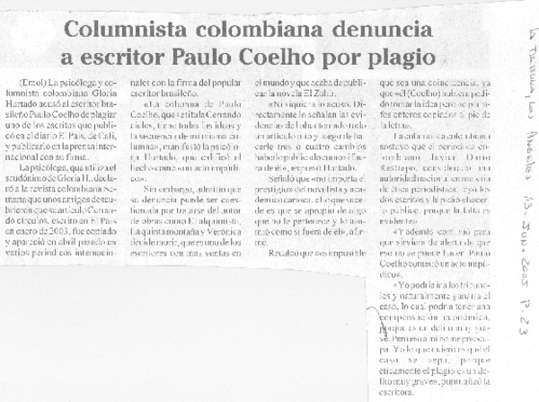 Columnista colombiana denuncia a escritor Paula Coelho por plagio [artículo]