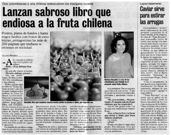 Lanzan sabroso libro que endiosa a la fruta chilena (entrevista) [artículo] Soledad Marambio.