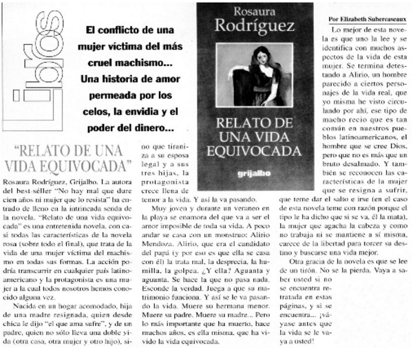 "Relato de una vida equivocada" [artículo] Elizabeth Subercaseaux.