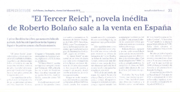 "El Tercer Reich", novela inédita de Roberto Bolaño sale a la venta en España [artículo].