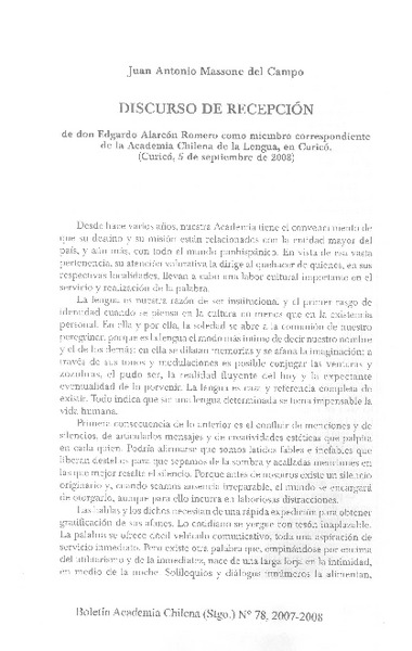 Discurso de recepción [artículo] Juan Antonio Massone.