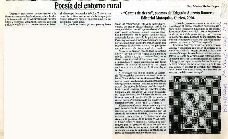 Poesía del entorno rural [artículo] Marino Muñoz Lagos.