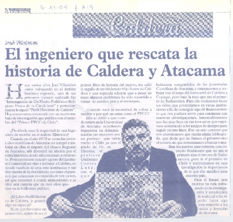 El Ingeniero que rescata la historia de Caldera y Atacama [artículo].