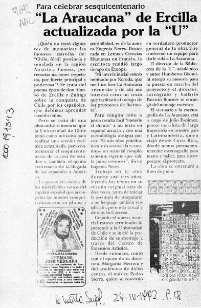 "La Araucana" de Ercilla actualizada por la "U". [artículo]