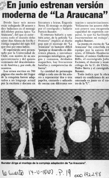 En junio estrenan versión moderna de "La Araucana". [artículo]