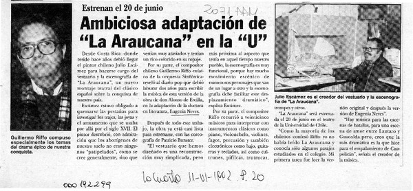 Ambiciosa adaptación de "La Araucana" en la "U". [artículo]