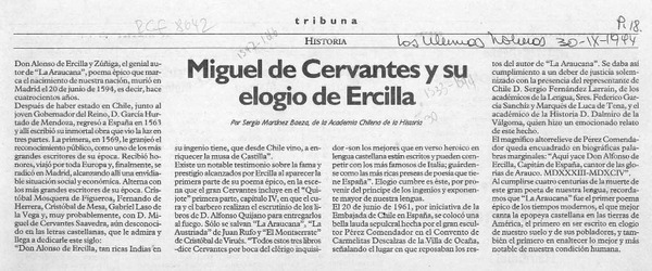 Miguel de Cervantes y su elogio de Ercilla [artículo] Sergio Martínez Baeza.