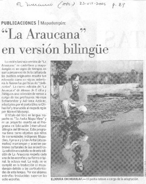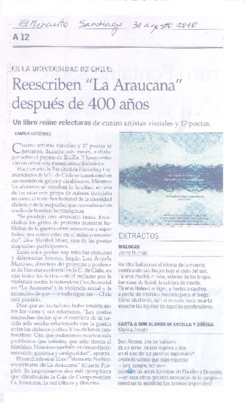 Reescriben "La Araucana" después de 400 años [artículo] Camila Gutiérrez.