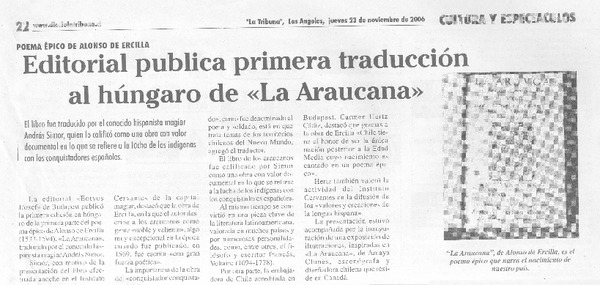 Editorial publica primera traducción al húngaro de "La Araucana" [artículo].