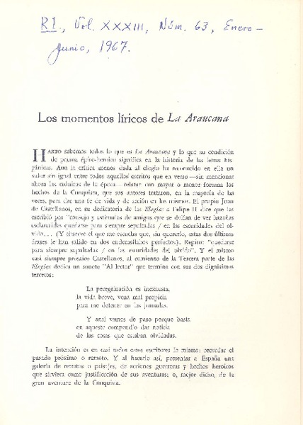 Los momentos líricos de La Araucana [artículo] Eugenio Florit.
