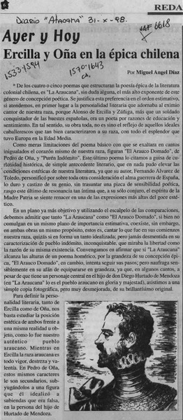 Ercilla y Oña en la épica chilena [artículo] Miguel Angel Díaz.