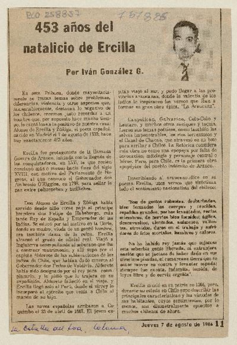 453 años del natalicio de Ercilla [artículo] Iván González G.