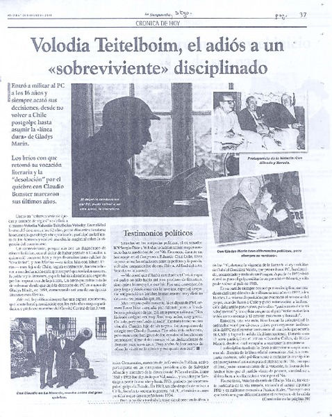 Volodia Teitelboim, el adiós a un "sobreviviente" disciplinado [artículo].