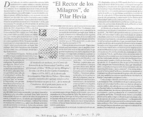 "El Rector de los milagros" de Pilar Hevia. [artículo]