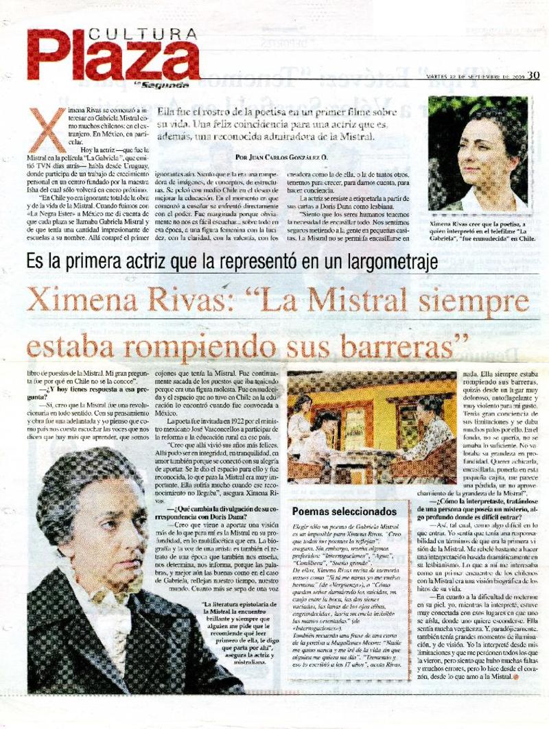 Autoras chilenas - Mistral, Gabriela - Entrevistas - Rivas, Ximena