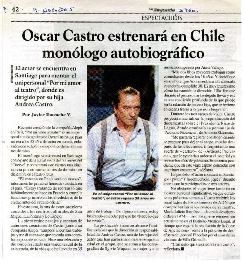 Oscar Castro estrenará en Chile monólogo autobiográfico [artículo]Javier Ibacache V.