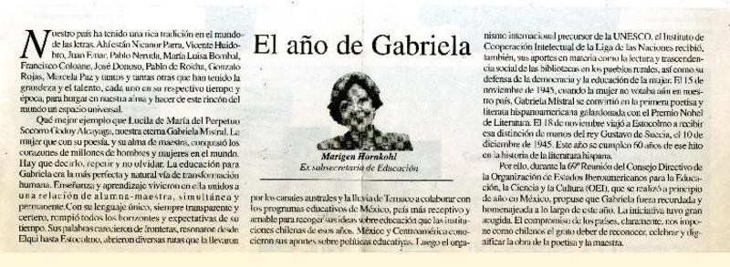 El Año de Gabriela [artículo]Marigen Hornkohl.