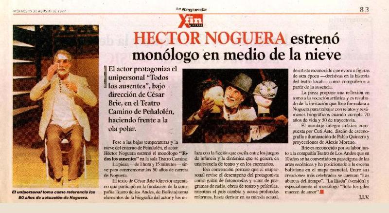 Héctor Noguera estrenó monólogo en medio de la nieve [artículo]U. I. V.