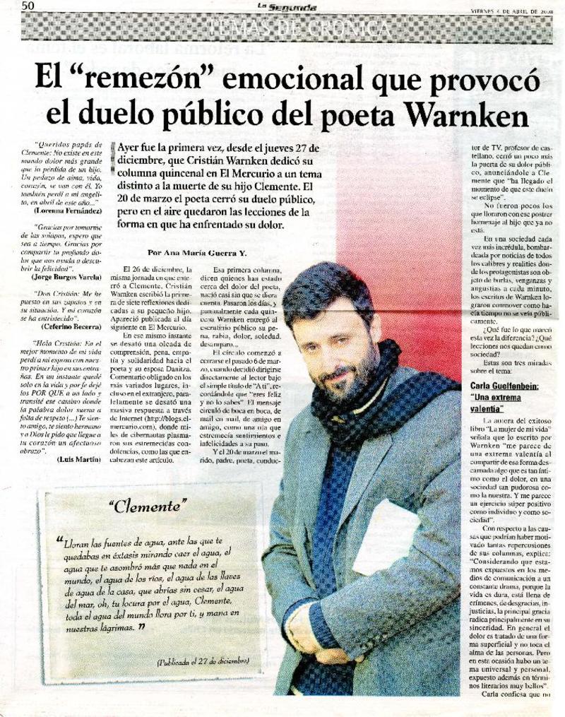 El "remezón" emocional que provocó el duelo público del poeta Warnken. [artículo]Ana María guerra Y.