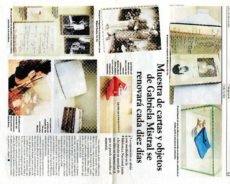 Muestra de cartas y objetos de Gabriela Mistral se renovará cada diez días [artículo].