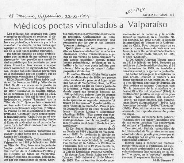 Médicos poetas vinculados a Valparaíso [artículo] Adolfo Simpson T.