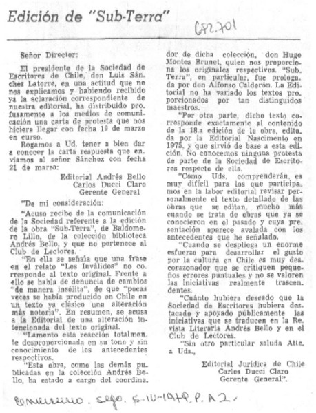 Edición de "Sub-Terra" [artículo] Carlos Ducci Claro.