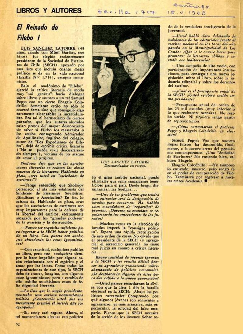 Autores chilenos - Entrevistas - Sanchez Latorre, Luis - Ercilla (Santiago, Chile)--