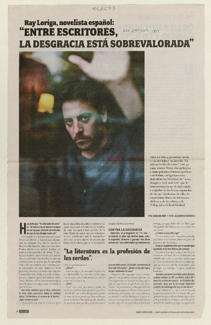 "Entre escritores, la desgracia está sobrevalorada" (entrevista) [artículo] Catalina May.