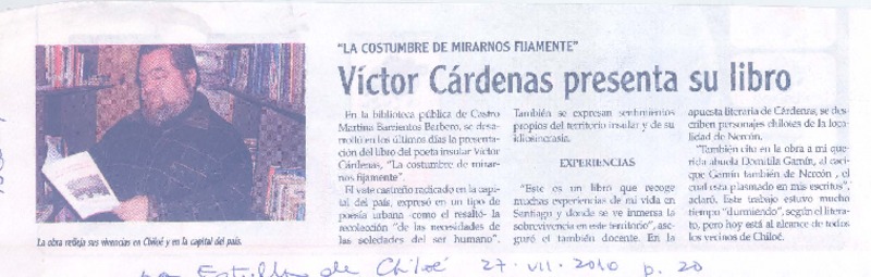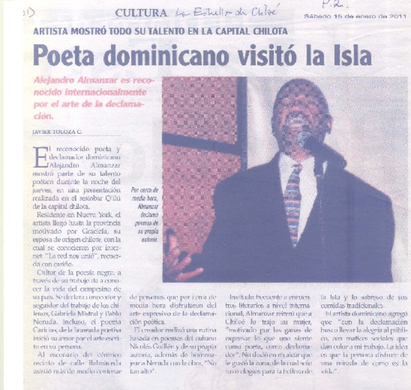Poeta dominicano visitó la Isla [artículo] Javier Toloza G.
