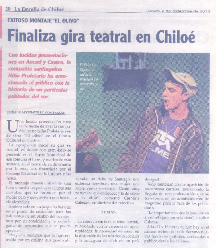 Finaliza gira teatral en Chiloé [artículo] Paolo Macchiavello Contreras.