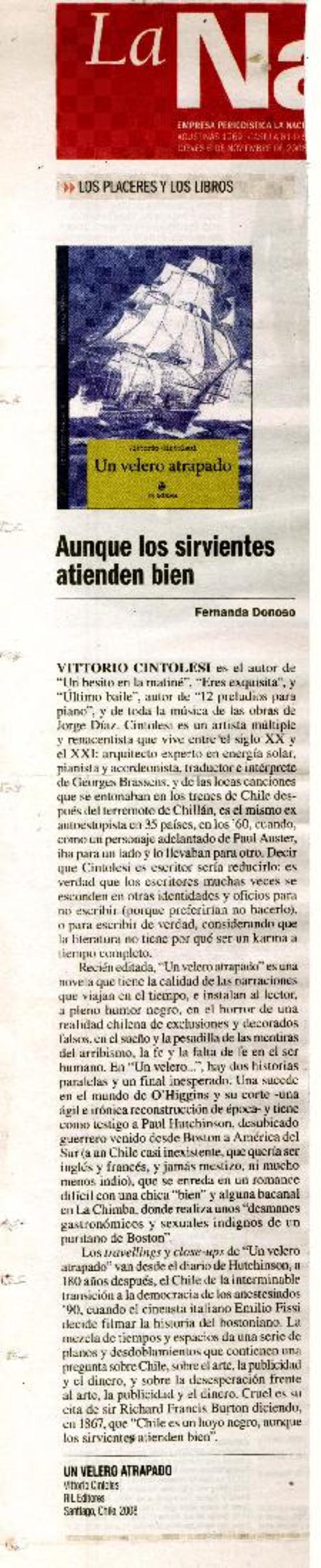 Aunque los sirvientes atienden bien [artículo]Fernanda Donoso.