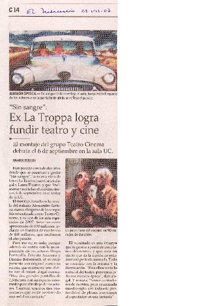 Ex La Troppa logra fundir teatro y cine [artículo] Eduardo Miranda.