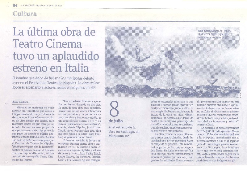 La última obra de Teatro Cinema tuvo un aplaudido estreno en Italia [artículo] Rocío Vladés C.