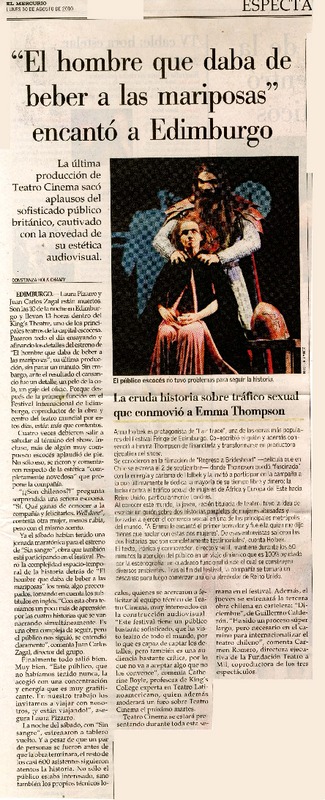 "El hombre que daba de beber a las mariposas" encantó a Edimburgo [artículo] Constanza Hola Chamy.