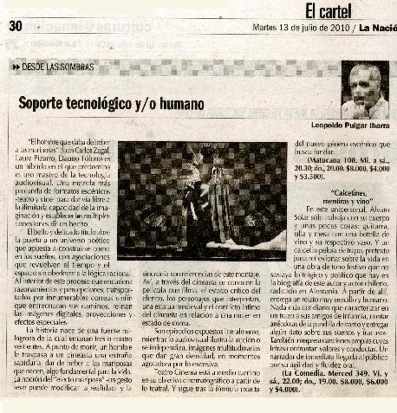 Autores chilenos - Entrevistas - Zagal, Juan Carlos - Compañía Teatro Cinema (Chile) - Hombre que daba de beber a las mariposas