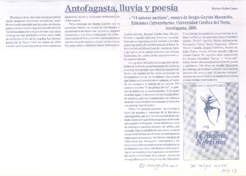 Antofagasta, lluvia y poesía [artículo] Marino Muñoz Lagos.