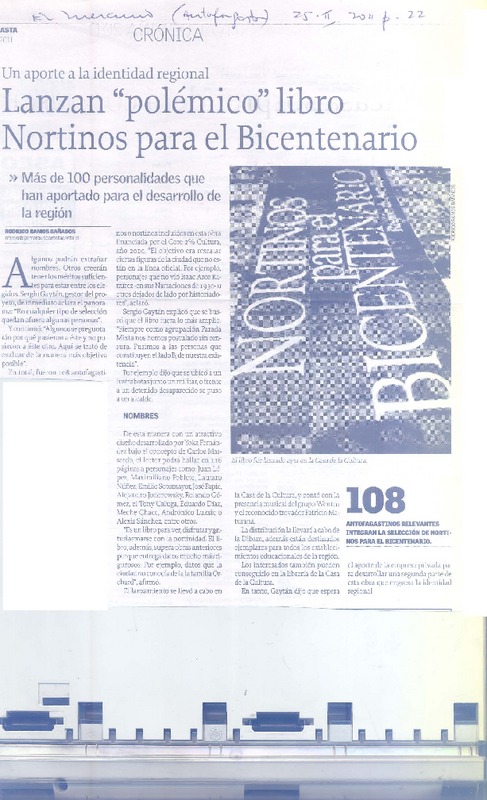 Lanzan "polémico" libro Nortinos para el Bicentenario [artículo] Rodrigo Ramos Bañados.
