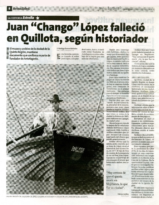 Juan "Chango" López falleció en Quillota, según historiador [artículo] Rodrigo Ramos Bañados.