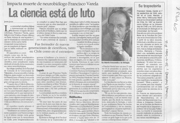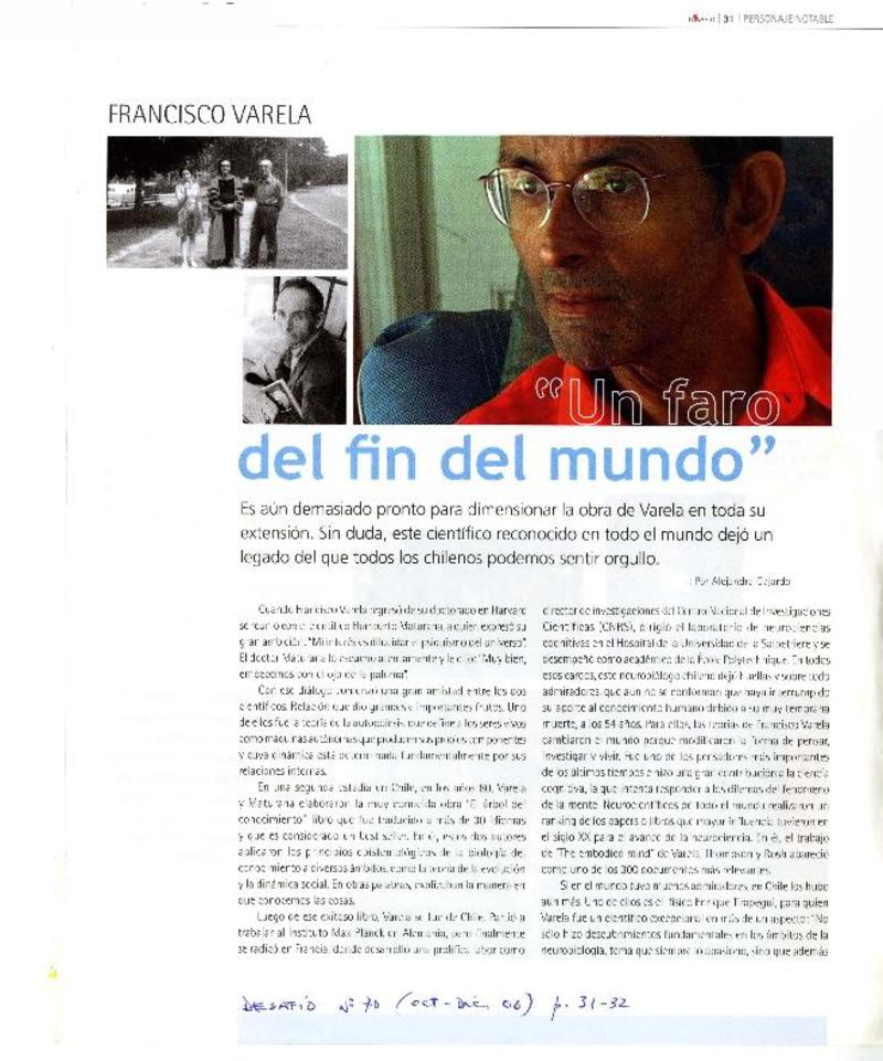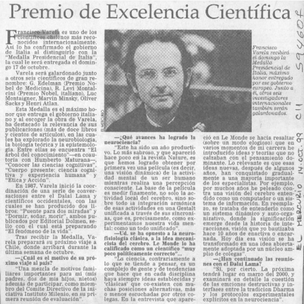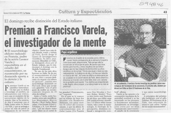 Premian a Francisco Varela, el investigador de la mente [artículo] A. G. B.