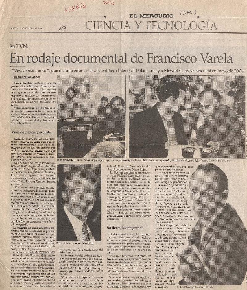 En rodaje documental de Francisco Varela [artículo] Maureen Lennon Zaninovic.