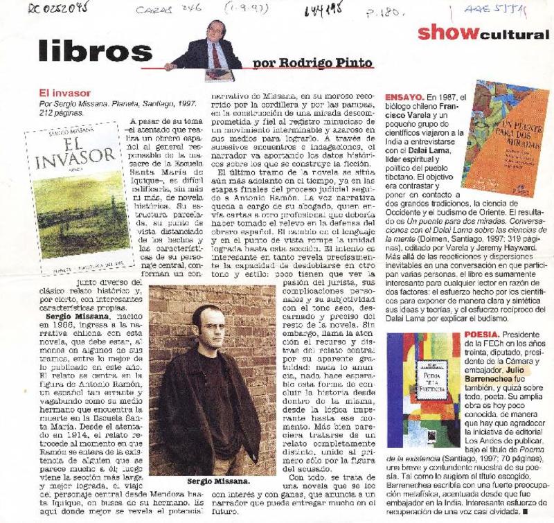 Autores chilenos - Missana, Sergio - Barrenechea, Julio - Varela G., Francisco - Poema de la existencia - El Invasor - Un Puente para dos miradas