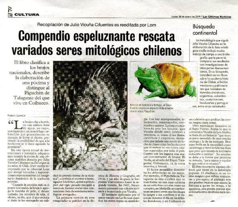 Compendio espeluznante rescata variados seres mitológicos chilenos [artículo] Fabián Llanca.