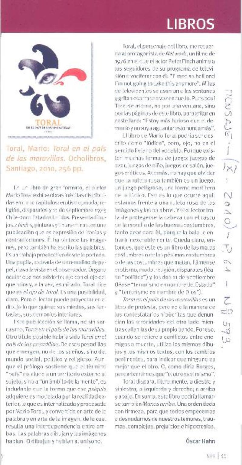 Toral en el país de las maravillas [artículo] Óscar Hahn.