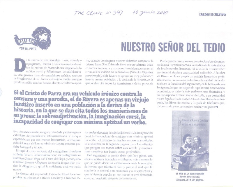 Nuestro señor del tedio [artículo] Tal Pinto.