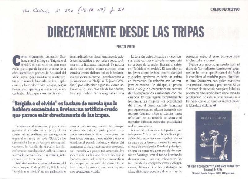 Autores chilenos - Valle, Rosamel del - Brígida o el olvido