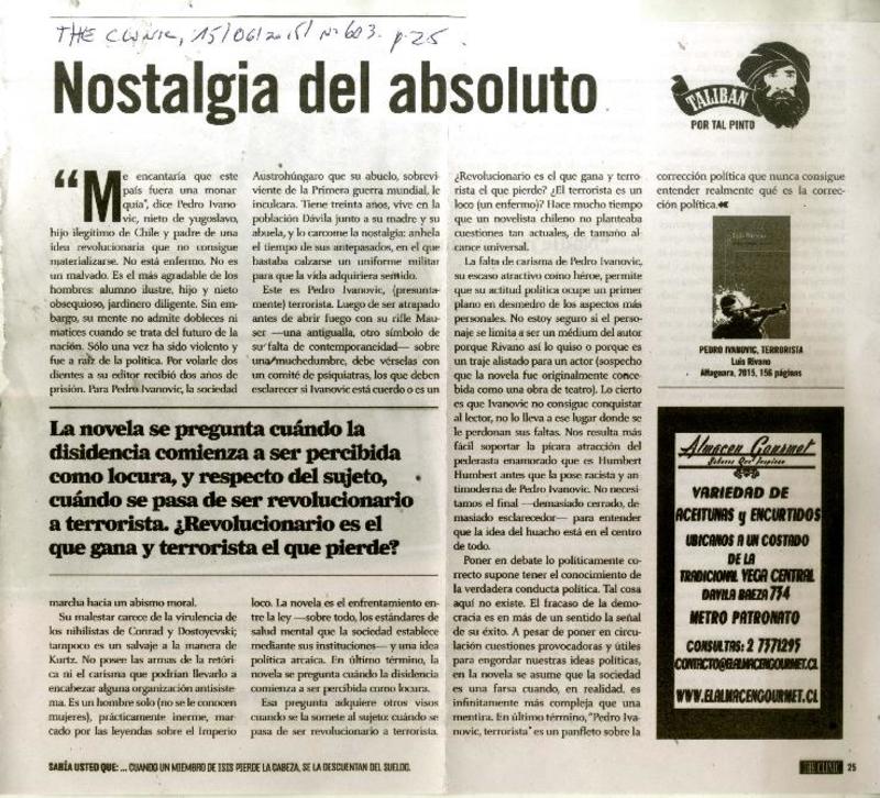 Autores chilenos - Rivano, Luis - Pedro Ivanovic, terrorista