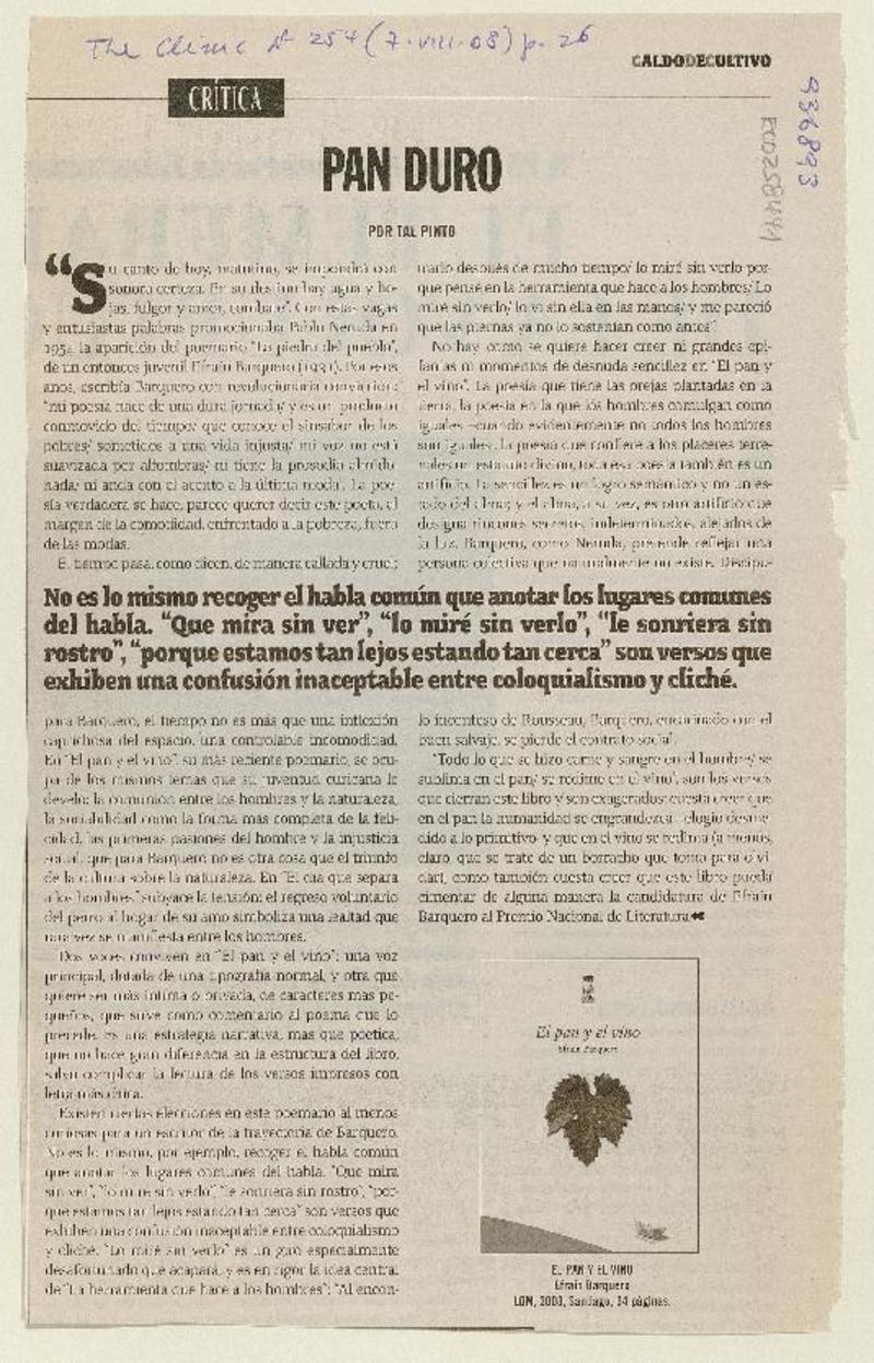 Autores chilenos - Barquero, Efraín - Pan y el vino