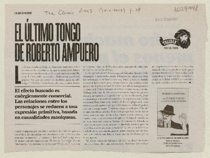El últimos tongo de Roberto Ampuero [artículo] Tal Pinto.