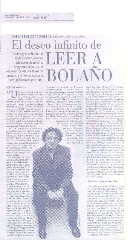 El deseo infinito de leer a Bolaño [artículo] Pedro Pablo Guerrero.